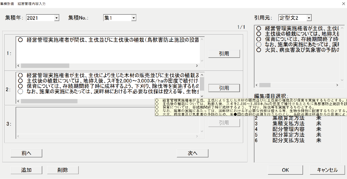 集積計画毎に、民間業者の提案書の有無、審査採点、採択を入力。
